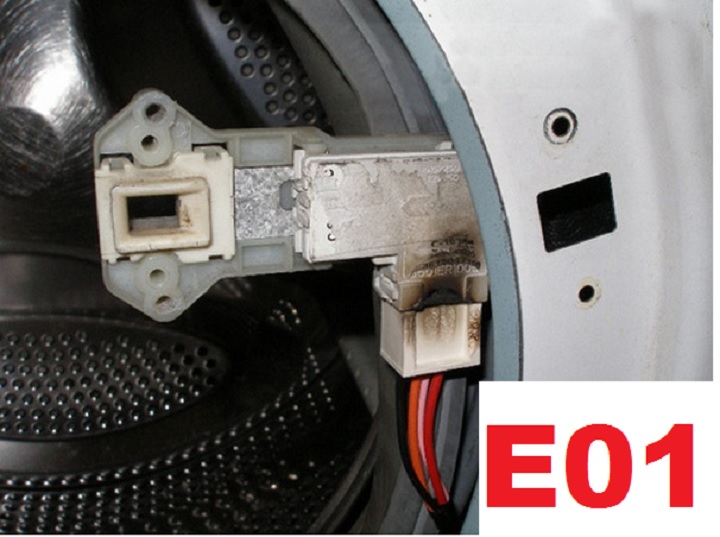 E01 – a problem with the washing machine door lock. The cause may be wiring, a faulty door lock, or a malfunctioning electronic controller.