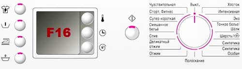 If you have a washing machine with a screen: electronic (with an LCD display) – and an error is displayed f16