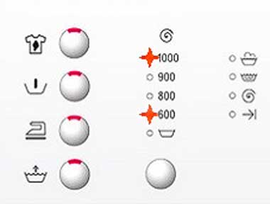 If you have a mechanical washing machine (without a display) with a programmer, then the indicator light for the number of revolutions (six hundred, four hundred, 800 or one thousand) will light up or flicker.