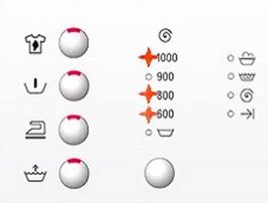 If you have a mechanical washing machine (without a display) with a programmer, then the light indicating the number of revolutions of one thousand and eight hundred or eight hundred (and six hundred) lights up or flickers.