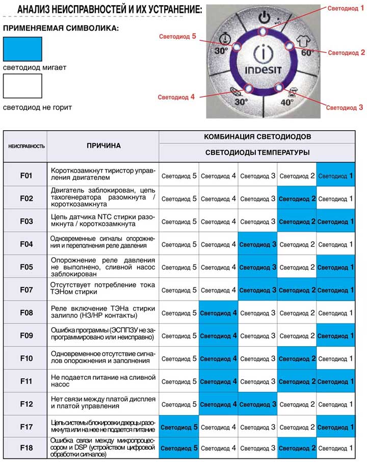 What are the Indesit error codes?