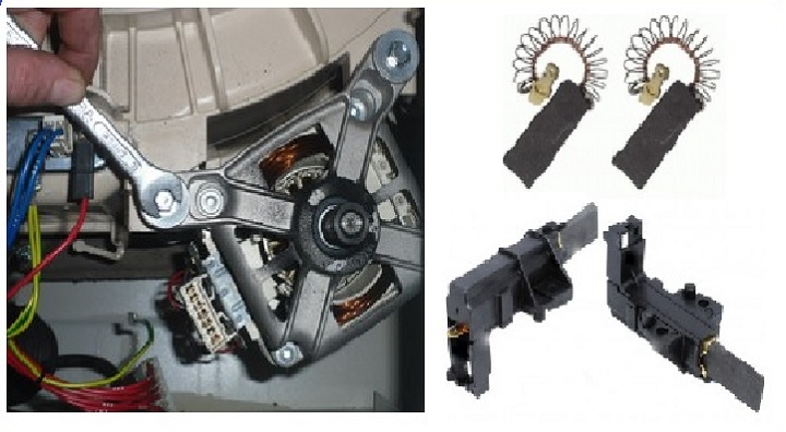 If you have a tester, you can check the heating element and the motor. If strong sparking is visually visible, you will need replacing brushesWhen purchasing them, you need to consider the type of motor your washing machine uses.