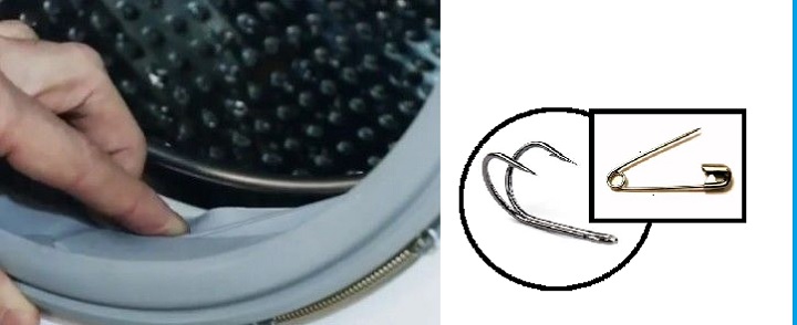 - There are sharp plastic parts, springs and other elements inside the washing machine hatch;