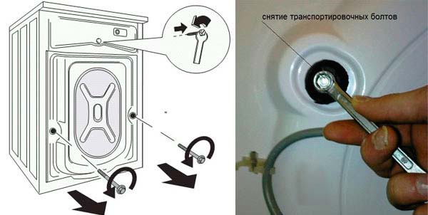 Important to know: you cannot use the washing machine until the mounting bolts are removed!