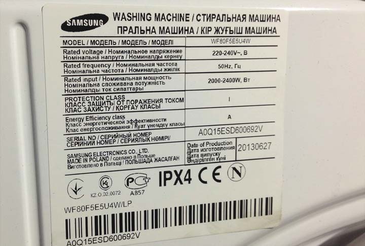 Typically, this information is affixed to the appliance body. You can also find complete information about a specific household model on the manufacturer's official website. For example, power information Samsung washing machine can be found on the Samsung website.