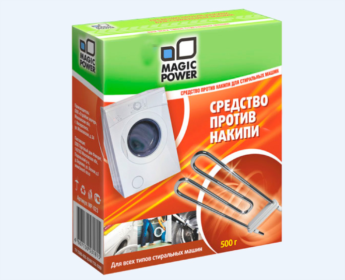 "Magic Power" is a German-made product that is rightfully considered one of the most effective in removing scale from the heating element and drum.