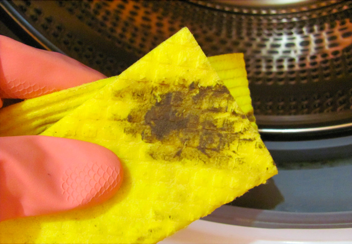 - Wipe everything you can with it: the rubber seal, the drum, and the tray for powder and other detergents.
