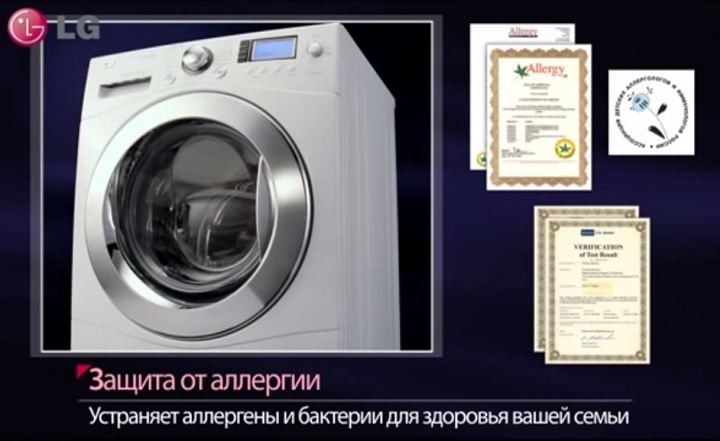 Model LG F1480RDS It can't boast of just one steam function. It contains a huge number of interesting programs. There is a system ("Six Movements of Care"), or as it is also called 6 MotionThis program features six different drum rotation cycles (algorithms), allowing for high-quality cleaning of various types of laundry and fabrics, including delicate fabrics.