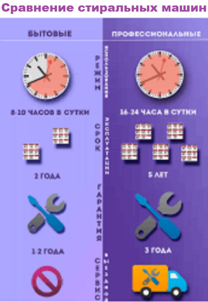 Wash quality. Only professional equipment (in our case, washing machines) achieve the highest performance in this area. Semi-professional machines are slightly inferior in this area, as they are largely based on the design of household machines. However, in some cases, the difference in washing results is almost impossible to notice.