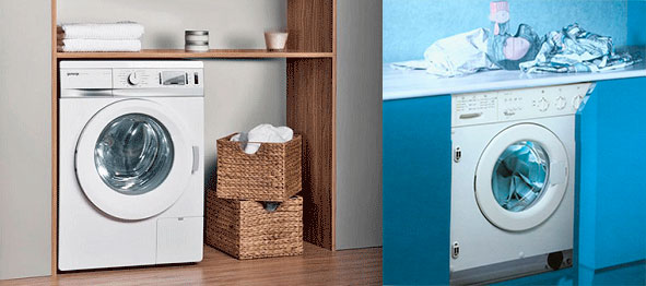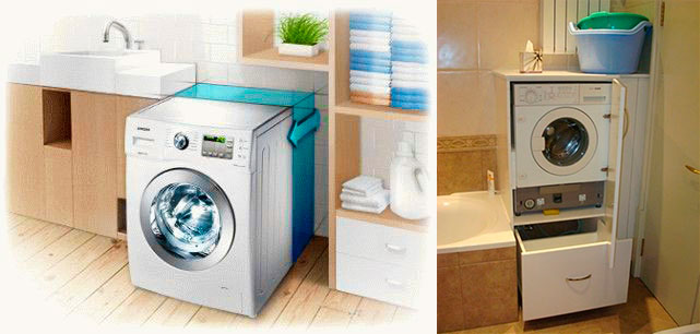 - A super-narrow washing machine is the ultimate space saver. It fits in places where a regular-sized washing machine wouldn't fit, like built-in kitchen cabinets. under the sink in the bathroom.