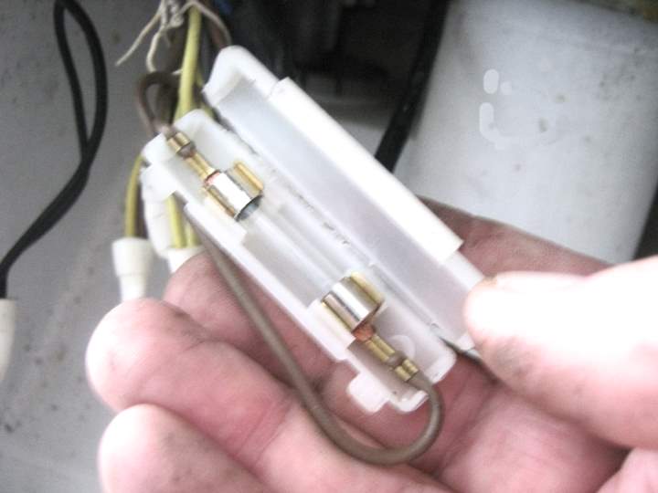 Most often, a washing machine fuse looks like a tube with a glass bulb.