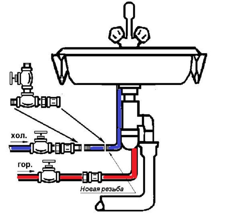 In this case, it's necessary to install a valve for the unit upstream of the main valve that shuts off the water supply to the heater. Failure to do this will result in you having to shut off the hot water supply throughout the entire house for future loads of laundry. - Third option: If you are installing your design in the kitchen near the sink, you can install a straight-through faucet in front of the mixer.