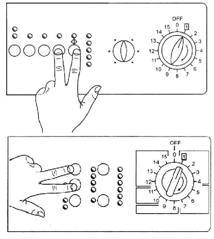 - Vajutage kõiki juhtnuppe korraga. See lülitab masina enesediagnostika režiimi.
