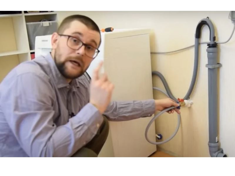 Nüüd ühendame vee ja pesumasina. Oluline on, et kõik ühendused oleksid tihedad ja lekkeid ei oleks. Kontrollige kõike hoolikalt!