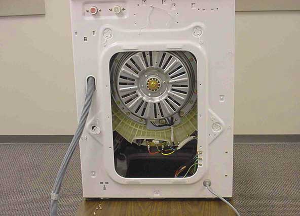 Nagu eespool mainitud, peamiselt pesumasinates kütteelement See asub tagapaneeli taga. Võib-olla on teie pesumasin Bosch, Samsung või LG, sellisel juhul leiate tagapaneeli tagant ainult mootori külge kinnitatud veorihma.