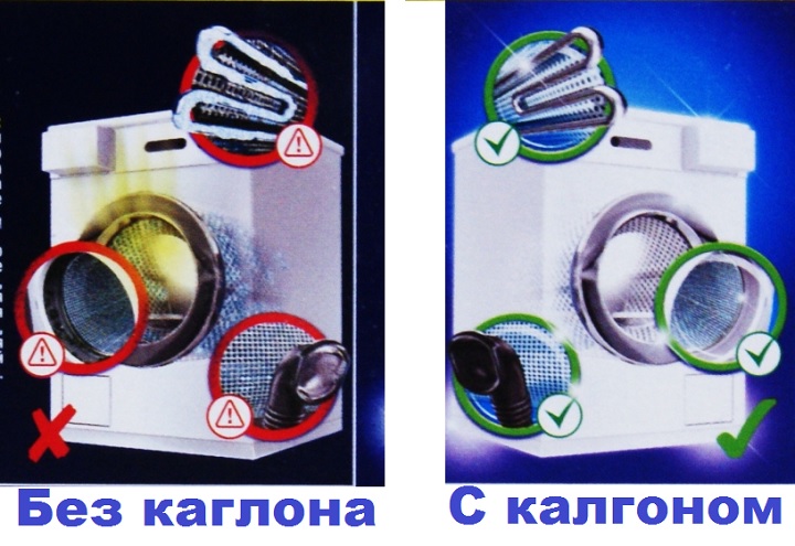 Calgoni kasutamise efektiivsus pesumasinates