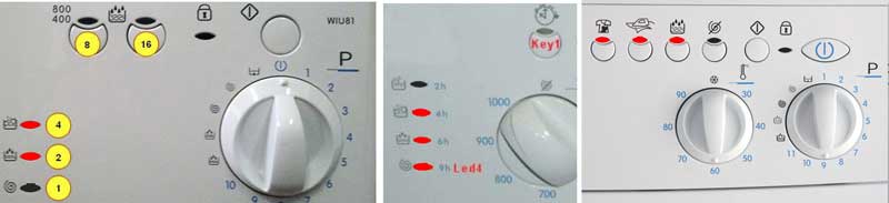 Ето как изглежда грешка F07 на пералня без екран, когато само индикаторите светят или мигат: