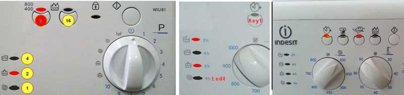 Ето как изглежда грешка F10 на пералня без екран, когато само индикаторите светят или мигат: