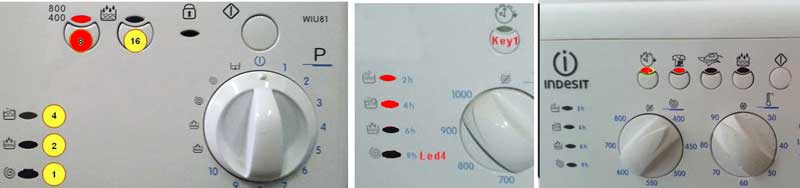 Ето как изглежда грешка F12 на пералня без екран, когато само индикаторите светят или мигат: