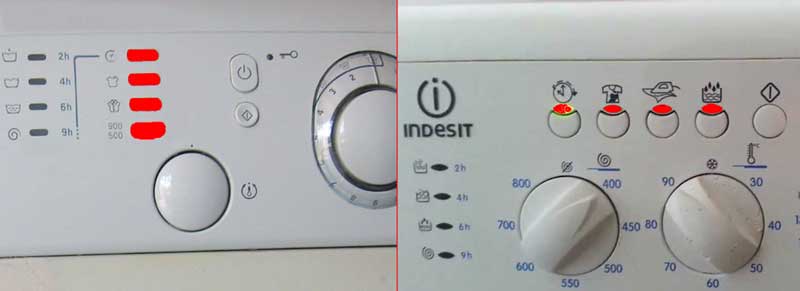 Ако имате пералня с екран (LCD дисплей) - електронна и се показва грешка F15, или електромеханична Indesit (когато няма дисплей), светят лампичките „Отложено пране“ и „Допълнително изплакване“ (по време на центрофугиране), „Супер пране“ и „Бързо пране“.