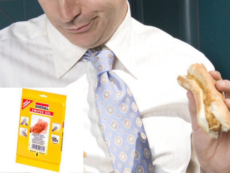 Друга иновация са кърпичките за премахване на петна. Те са предназначени за премахване на пресни петна от различни повърхности, включително тъкани. Могат да се използват, ако например току-що сте разлели нещо върху себе си. Въпреки че не премахват всичко и полезността им е съмнителна, те са удобни. Можете да опитате да използвате тези кърпички, за да премахнете петна от връхни дрехи.