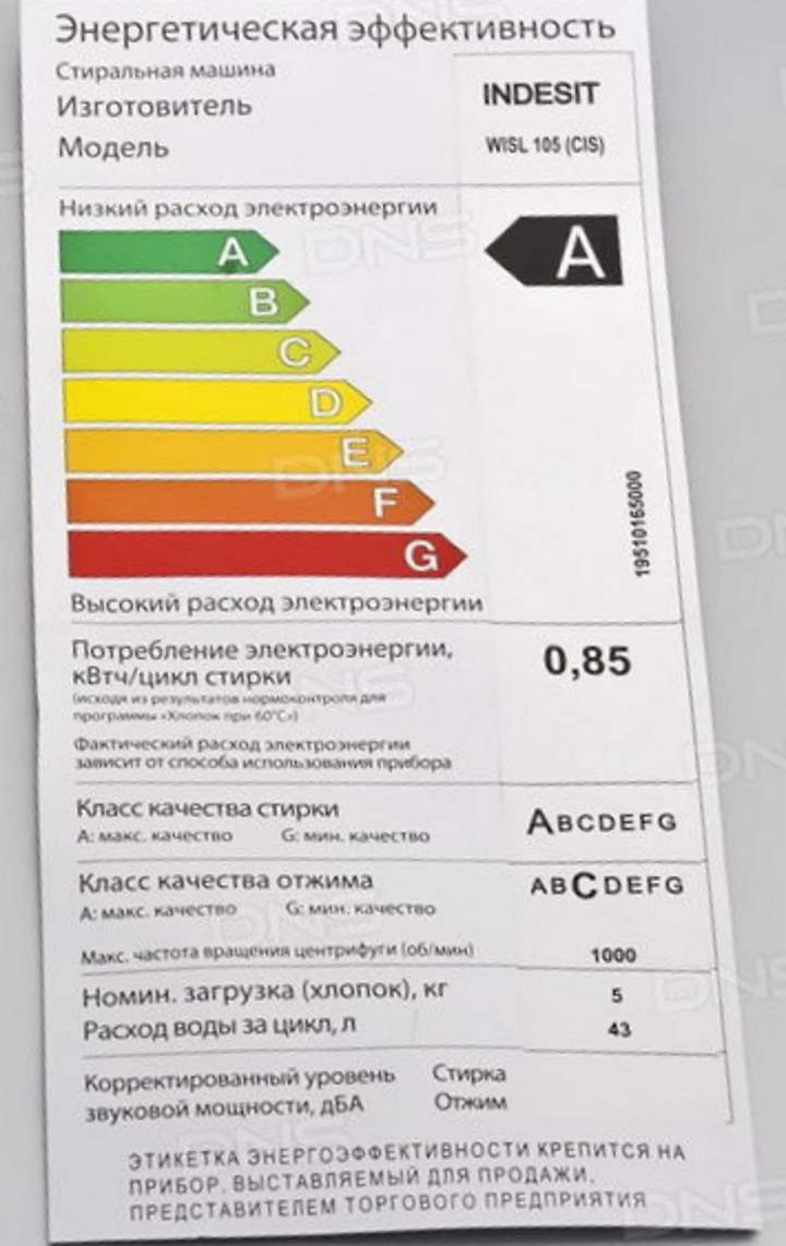 Машината е с най-висок клас на пране, буква А.
