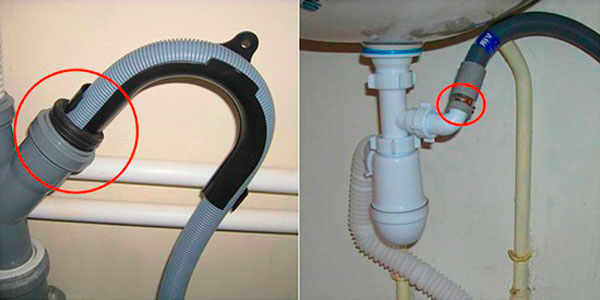 Изходът на дренажния маркуч е свързан или към близък сифон, или към самата канализационна система. Някои хора опростяват процеса, като не свързват маркуча към канализационната система, а просто спускат края му във ваната или мивката.