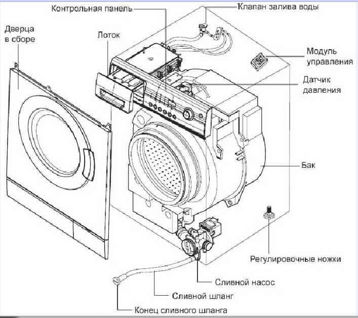 Преди да започнете да отстранявате този вид проблем, трябва да разберете теорията, която стои зад него. устройства за дренажна система Пералня. По-новите модели са проектирани да източват използваната течност от барабана в специална дюза.