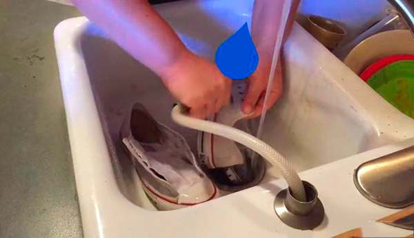 - Изплакнете добре маратонките, леко ги изстискайте и ги окачете над ваната, за да се отцедят.