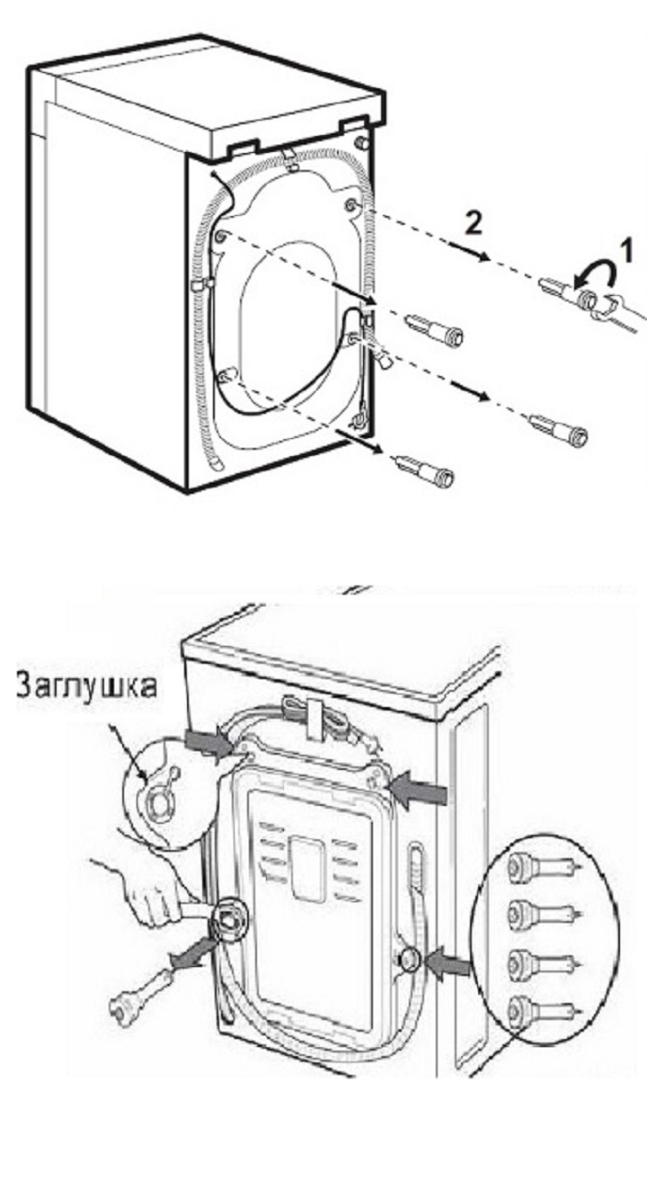 - Отстранете транспортните винтове, закрепващи резервоара. Използвайте гаечен ключ, подходящ за диаметъра на винта.