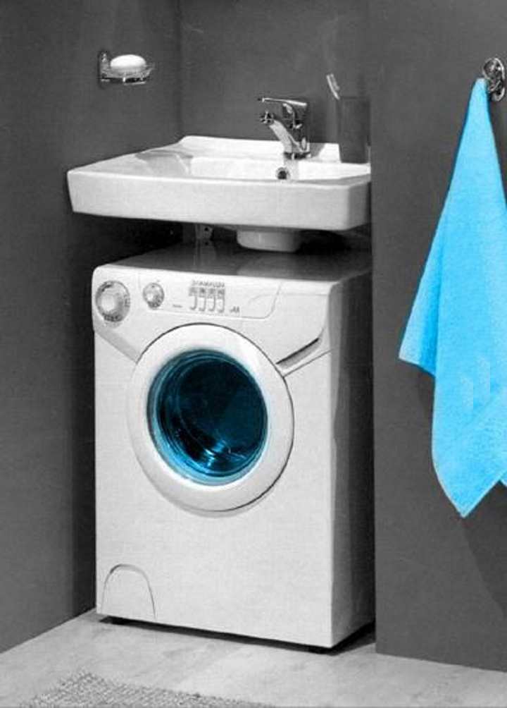 Пералните машини с намалена височина са проектирани да се поберат под мивката. Candy произвежда повечето от тези модели.