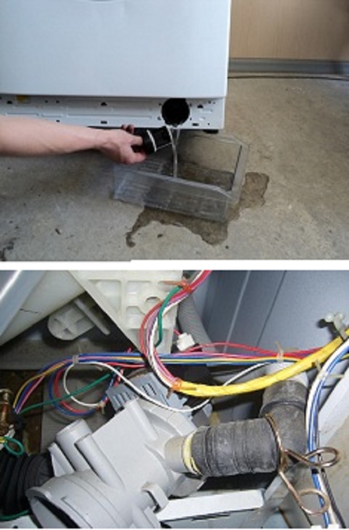 Помпата за източване на пералнята вероятно е запушена и трябва да се почисти.