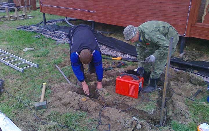 - Заземителен проводник, който идва от електрическия панел, разположен в къщата, трябва да бъде заварен към горната част.